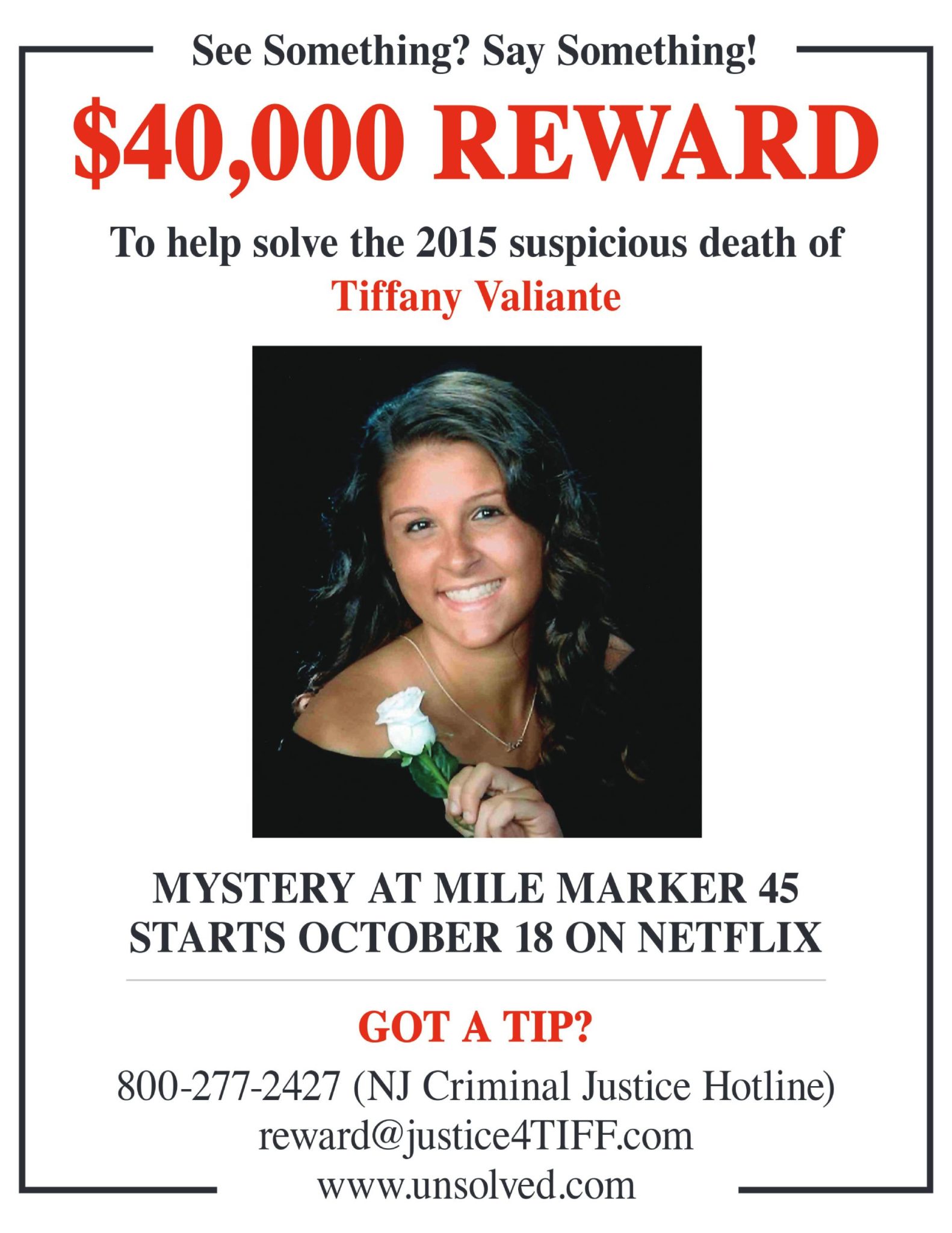 $40,000 reward to help solve the 2015 Suspicious Death of Tiffany Valiante
